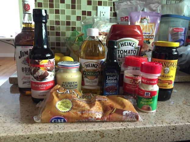 I’ve been on a Latin inspired hype with my 4th of July recipes, so to balance it out I threw in some good ol’ Amurrican barbecue. This recipe was adapted from epicurious, but I omitted a few ingredients, added a little more of others, and for the sake of throwing a huge barbecue, I doubled the recipe as follows. I don’t know why I never made my own barbecue sauce before; it’s super easy! You just throw everything into a pot and let it cook down, and most of the ingredients are staples you can usually find in your pantry.
