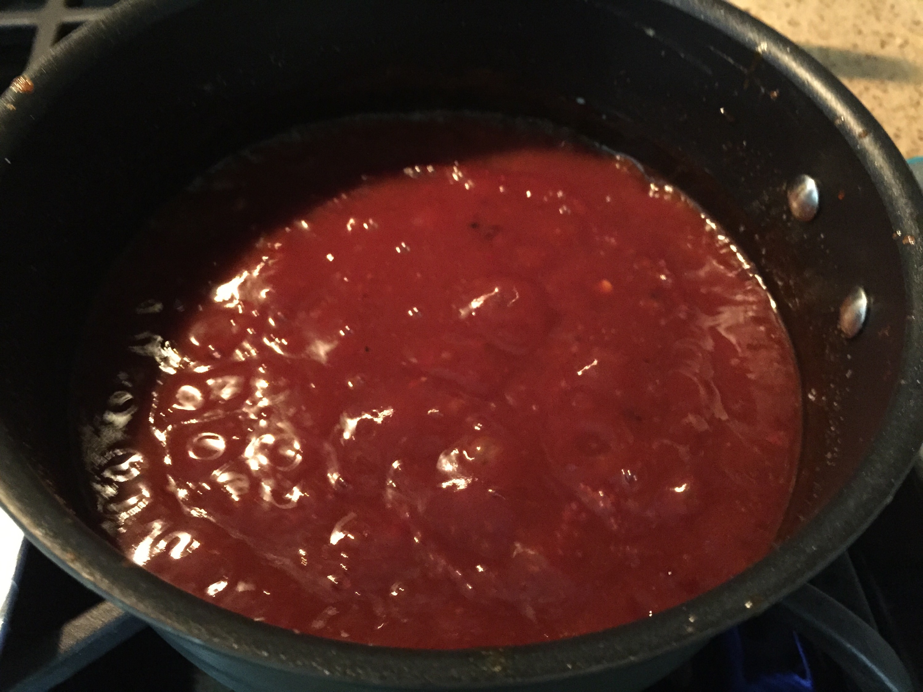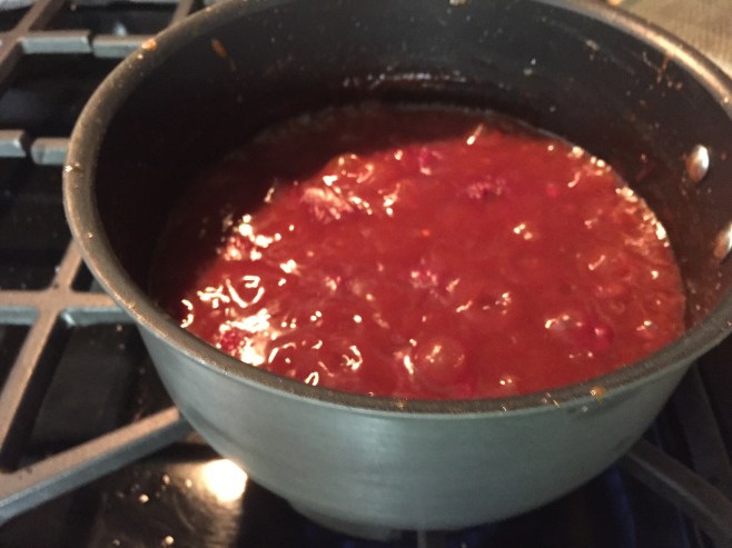 Keep the mixture going over low heat, whisking frequently, until it starts to thicken up and the bourbon has cooked off. I kept this going for about 25 minutes. Taste as you go along! I thought it was done after 15 minutes, but I tasted it and the bourbon flavor was still incredibly overwhelming.