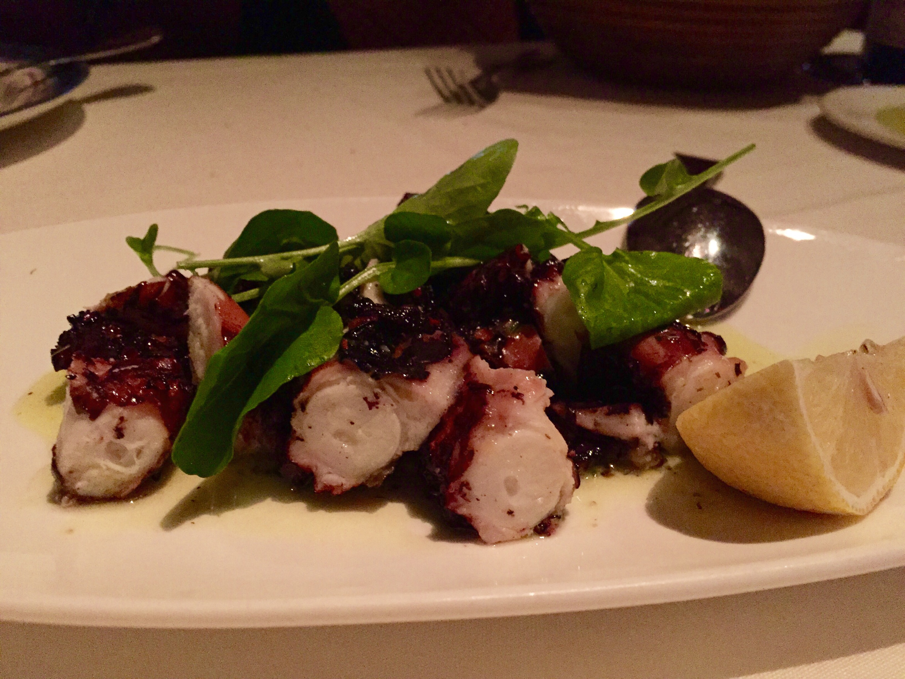 We had to start with the spanakopita, and the highly recommended grilled octopus. The spanakopita got an enthusiastic thumbs up from Papa Lee, and the grilled octopus was super tender and flavored with lemon and olive oil.