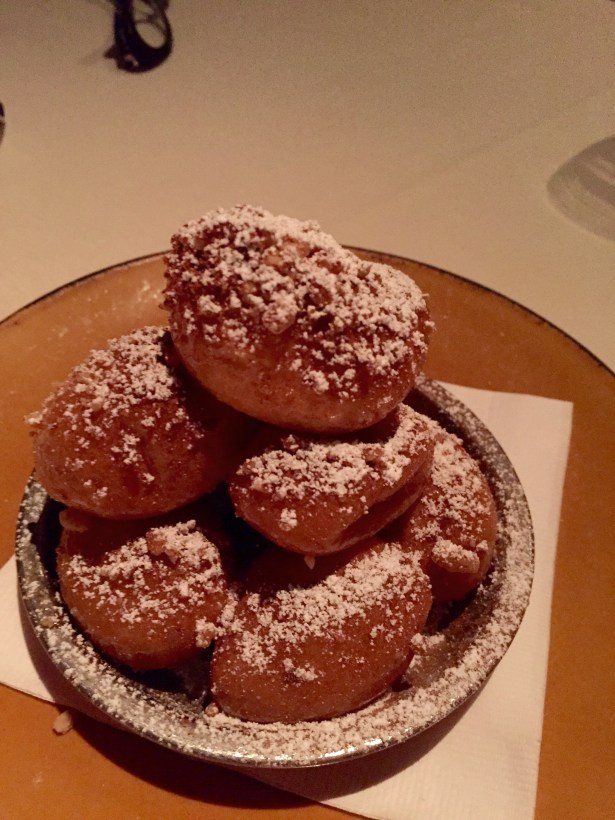 We were debating on whether to order dessert, and then I saw loukoumades on the menu and made an executive decision. Loukoumades are small Greek donuts, drizzled with honey, cinnamon, and some type of ground nut. I tried these first at last year’s Greek festival in Oakland and was automatically hooked. The donuts are not dense like American donuts, but instead they’re nice and puffy and light on the inside, while being super crisp on the outside. The honey gives it a subtle, sweet flavor. If you ever find these, you have to order them. You can thank me later.