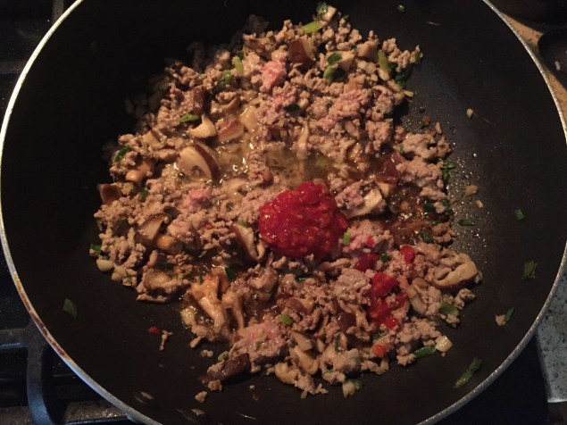 Now that you’ve added the sauce, the mixture will start to brown up: