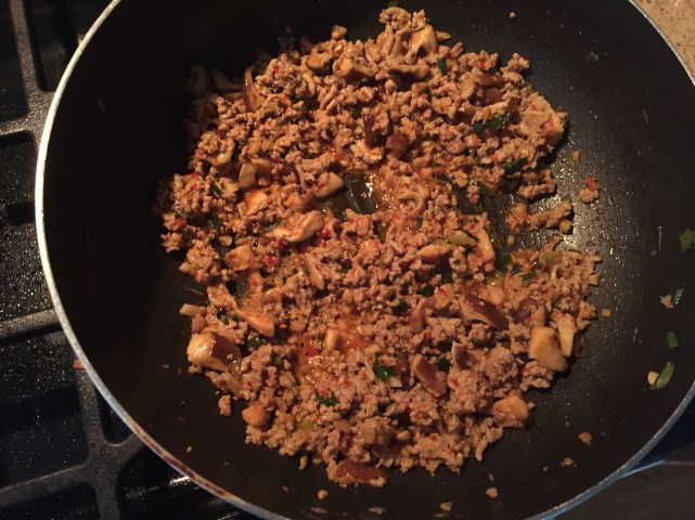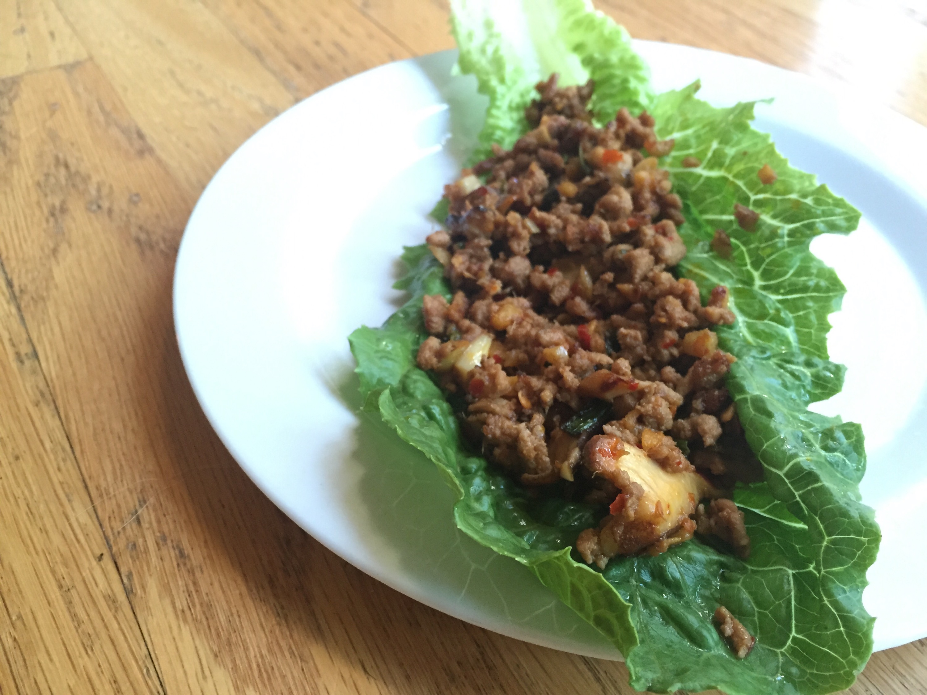 Get your lettuce ready by washing the leaves and drying them off. Spoon the turkey mixture onto the lettuce and use them like little Asian tortillas.