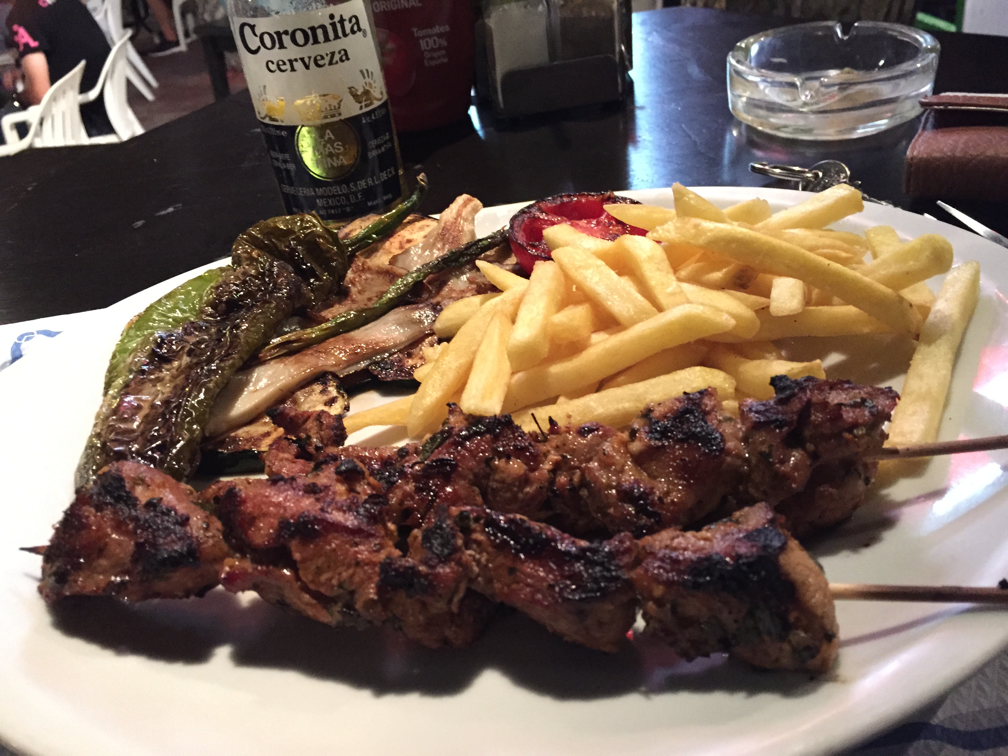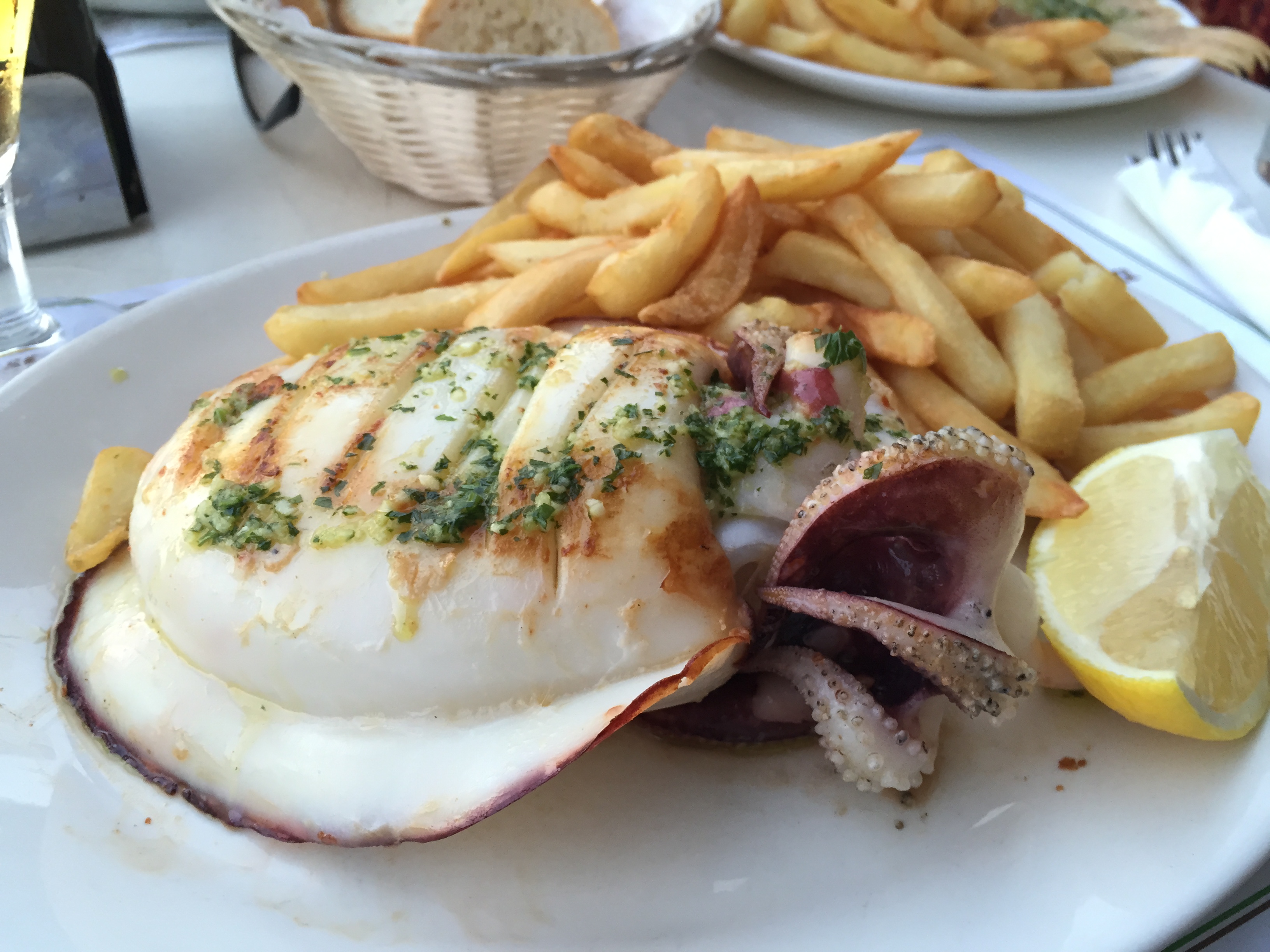 This was one of the best things I ate in Ibiza. Lamb skewers, served with perfectly grilled vegetables and french fries. I’m honestly french fry’d out, and was so happy to see the veggies on my plate. A blistered tomato, grilled eggplant, some type of mushroom I haven’t seen before, zucchini, and a grilled pepper make the perfect side dish to the lamb. The lamb was flavored well and cooked to perfection.