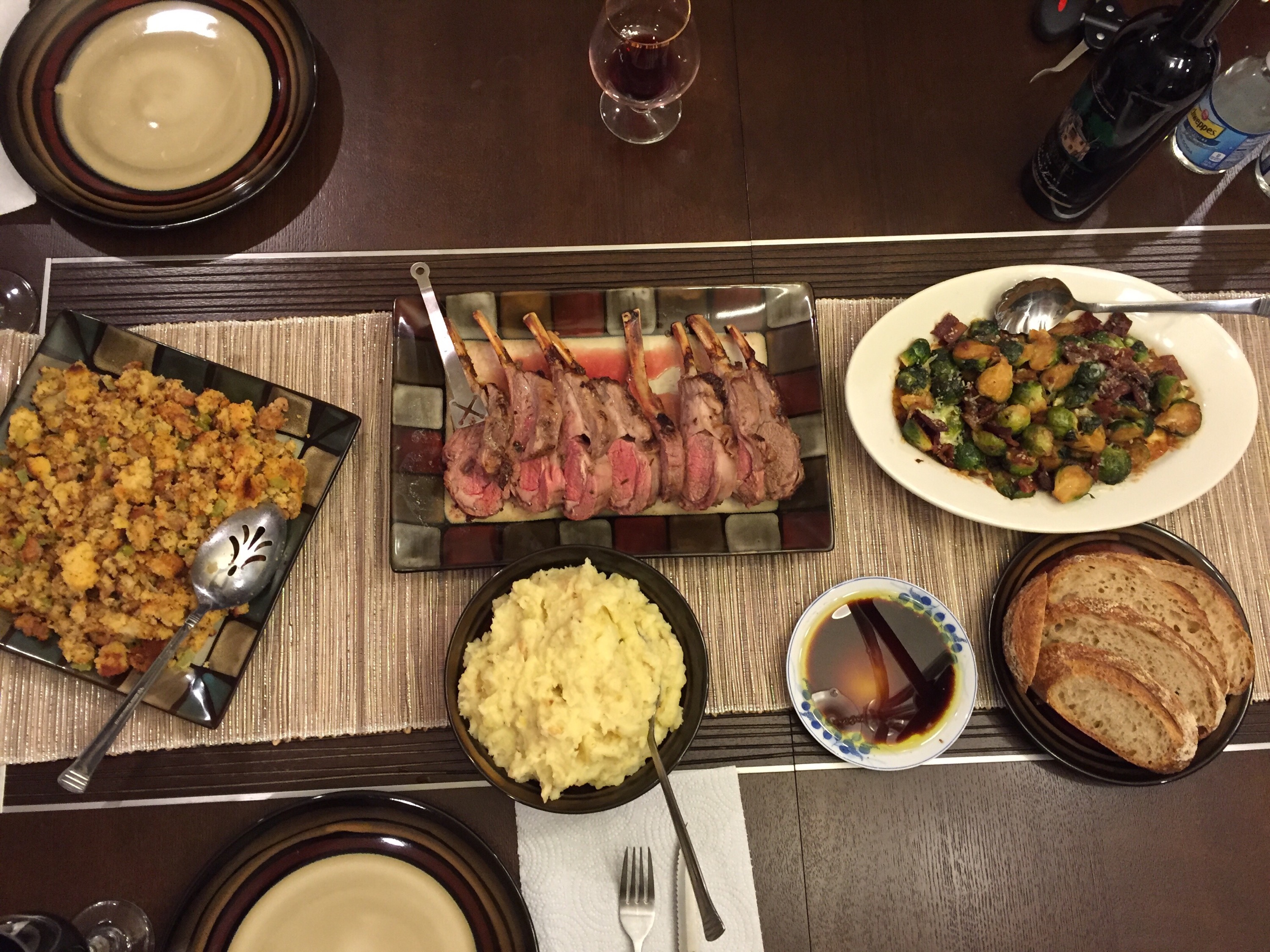 My family’s small and my dad hates turkey so we always do something different for the main entree. This year my parents requested a rack of lamb, which I’ve never made before. I’m happy to say it was a great success, and my parents left super full and satisfied.