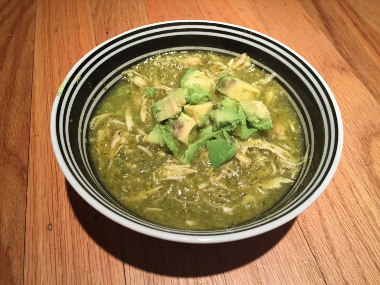 Chile Verde is usually made with pork, and you could certainly use that for this recipe. I’m trying to lighten things up a bit so I used chicken breast. Got this recipe from the fabulous Ambitious Kitchen and made a couple of minor tweaks.