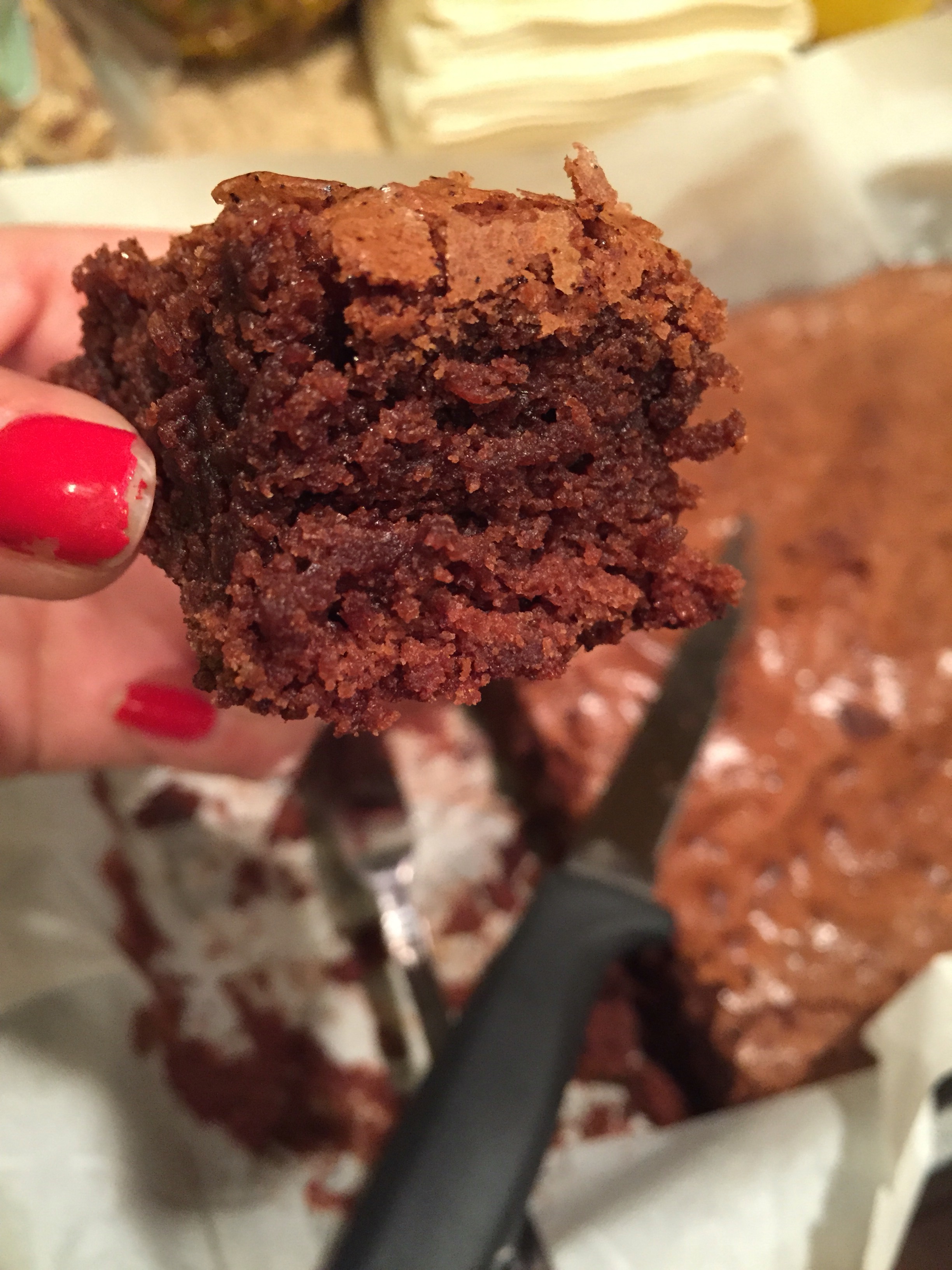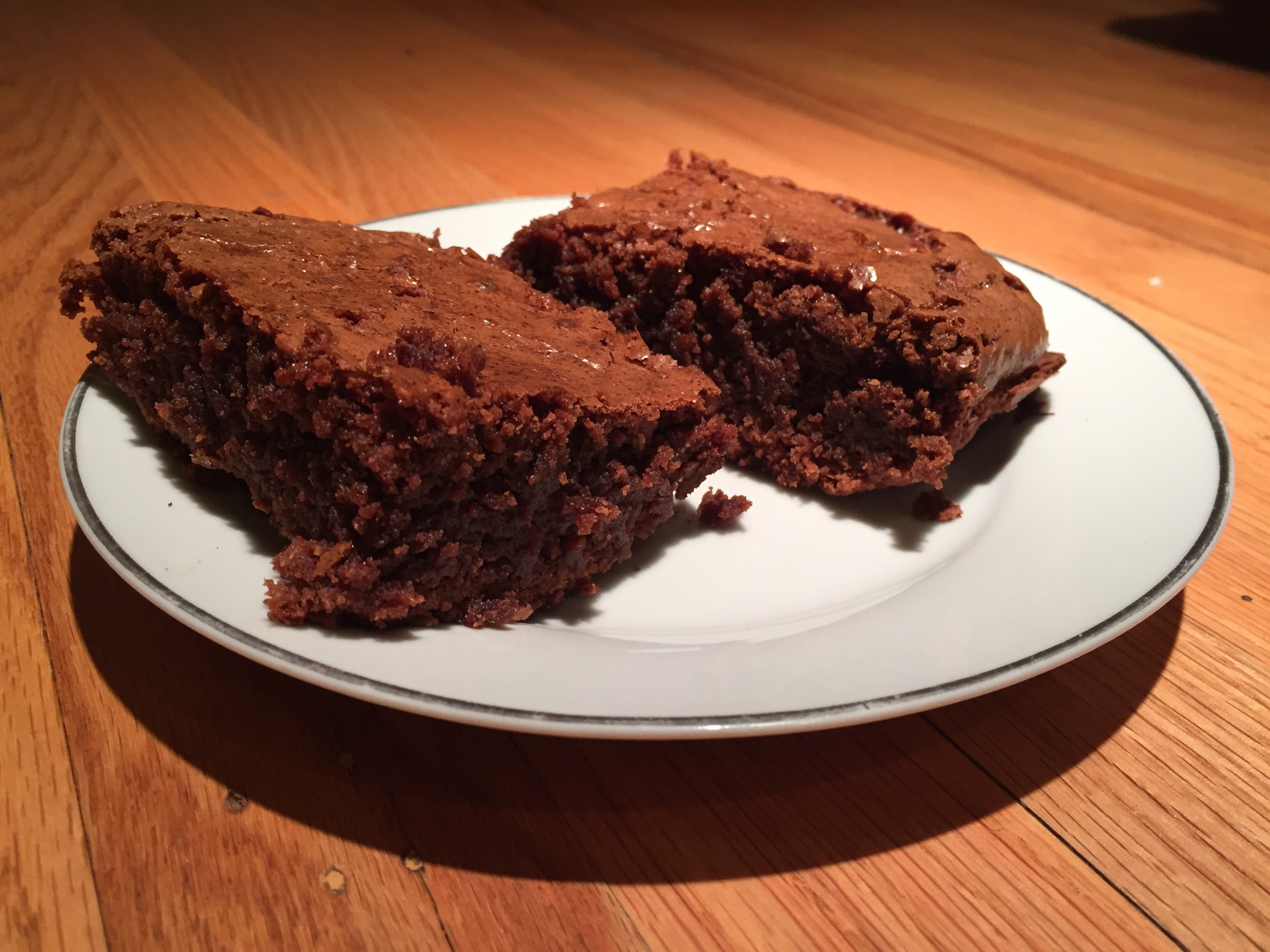 So now I’ve got miscellaneous half-full (I’m an optimist) bottles of booze in my house, and I noticed I had some leftover amaretto. I immediately thought of baking with it, and stumbled across this brownie recipe from Tyler Florence.