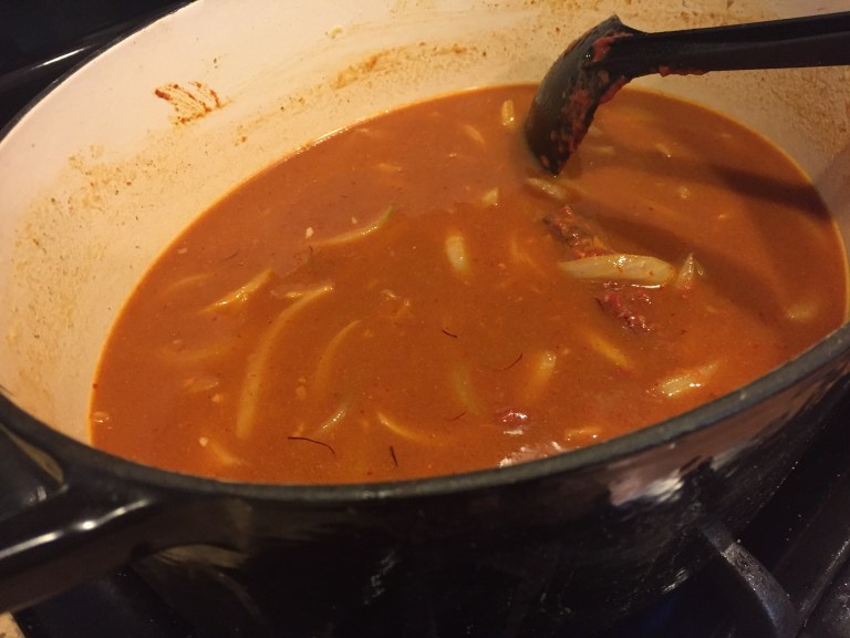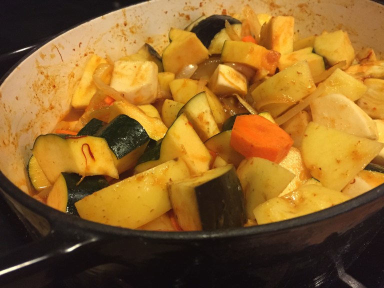 Note, this recipe I used made enough tagine to feed a small army. Seriously, I had to cook this in two batches because it wouldn’t fit in my pot. So for your sake, I’ve cut the proportions in half.