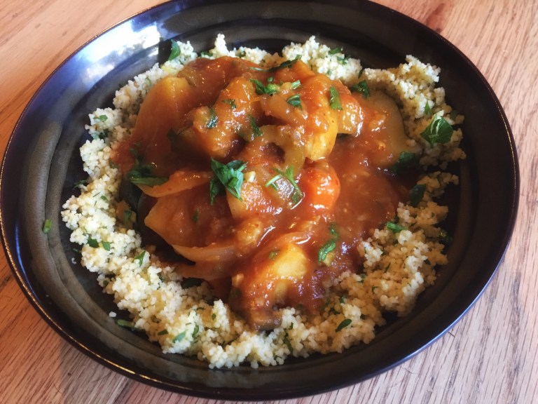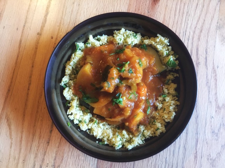 I’ve never had tagine before, but it’s a hearty Moroccan stew of a bunch of veggies, and meat if you prefer. Chopped up preserved lemons are a key ingredient here, and since I’m on a healthier kick I opted to just stick with veggies.