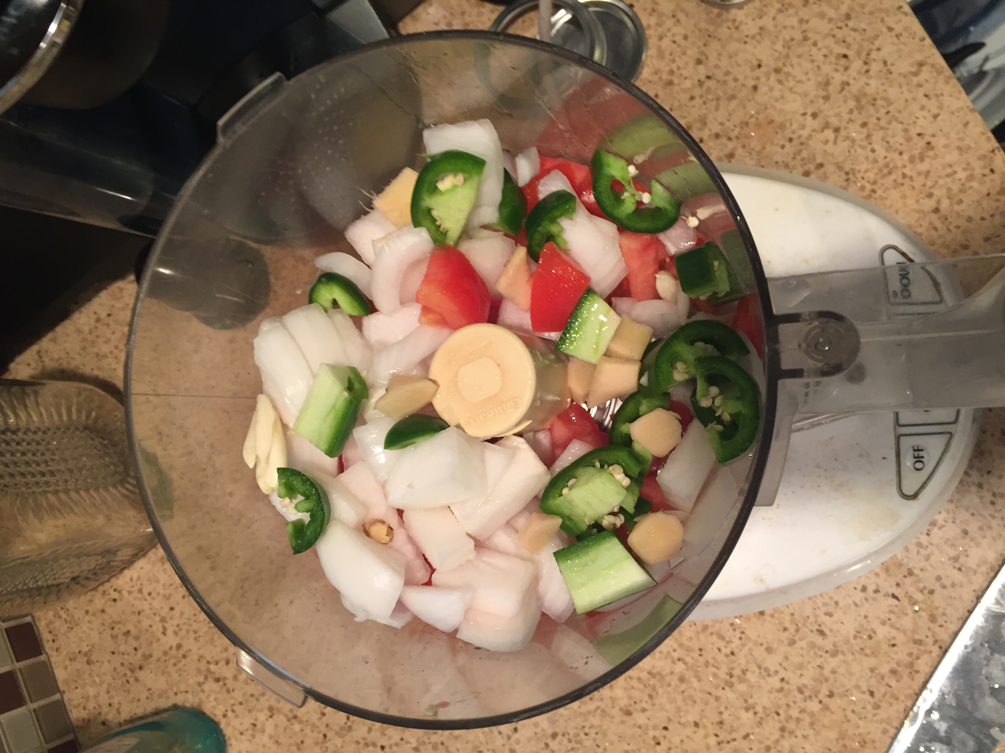 The chana masala is even easier to prep. Throw your onion, tomato, jalapeno, ginger, and garlic into a food processor and let it do all the work!
